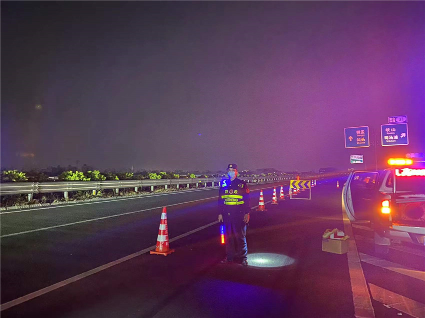 ▲路政員圍蔽引導交通
